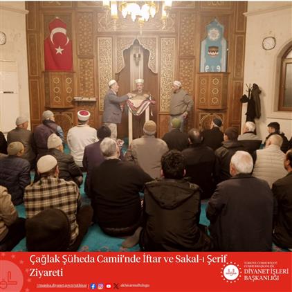 Çağlak Şüheda Camii’nde düzenlenen iftar programı, teravih namazının ardından Sakal-ı Şerif ziyareti ile devam etti. Programa Akhisar İlçe Müftüsü Muhammet Salman katılım sağladı.