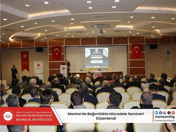 Manisa İl Müftülüğü tarafından Manisa Dini İhtisas Merkezi Müdürlüğü Konferans Salonu’nda bağımlılıkla mücadele konulu bir seminer düzenlendi. Programa merkez ve ilçe müftülüklerinde görev yapan imam hatipler ile müezzin-kayyımlar katıldı.