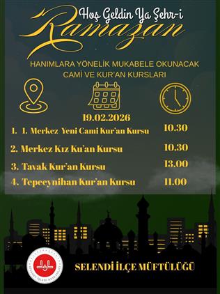 İlçe Müftülüğümüzce kadınlara yönelik mukabele programı yapılacak Kur'an Kursları ve vakitleri.